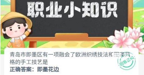 ,市即手工青岛市即墨区有一项融会了欧洲织绣技法和图案风格的墨区